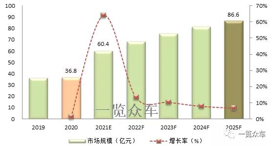 相較傳統(tǒng)汽車,新能源汽車在電驅(qū)動單元、電氣設(shè)備的數(shù)量上都有較大的增加,內(nèi)部動力電流及信息電流錯綜復(fù)雜,特別是高電流、高電壓的電驅(qū)動系統(tǒng)對連接器的可靠性、體積和電氣性能提出更高的要求,這意味著新能源汽車對連接器產(chǎn)品需求量及質(zhì)量要求都將大幅提升。 一覽眾咨詢數(shù)據(jù)顯示:2020年中國新能源汽車高壓連接器市場規(guī)模36.8億元。預(yù)計到2025年國內(nèi)電動汽車高壓連接器市場規(guī)模將達(dá)到86.6億元。