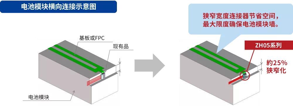 隨著電池生產數(shù)量的增加對安全性的要求 一般監(jiān)控車載電池電壓等連接到帶電部位時,使用棒狀突出的公端子作為基板端的連接器。但是,現(xiàn)有的連接器端子形狀會產生異物附在相鄰端子之間,從而產生短路的風險。而且工作人員在進行插拔作業(yè)時接觸到端子會有觸電的風險。在世界范圍內,隨著向混合動力車和EV(電動汽車)轉移的趨勢,電池的生產數(shù)量不斷增加,這也意味著風險的增加,那么安全對策就成為了當務之急。 創(chuàng)造性的結構,確保高安全性 為了滿足這樣的需求,“ZH05”在追求車載品質和防止觸電這兩點上進行了開發(fā)。板對線連接器采用箱型的公端子,用樹脂將端子周圍物理性包圍使之絕緣,并實現(xiàn)了即便有異物進入也不會造成短路,工作人員不會觸摸到端子的革新化的防觸電結構。另外,采用了公端子獨有的雙彈簧結構,確保了適合車載內部連接使用的耐熱性及耐振動性,從而完成了高可靠性的連接器。并且,由于在電池方面,電池的容量很重要,所以也追求其小型化,這就是“ZH05”。 防觸電車載用板對線連接器“ZH05” (1) 基板端連接器的公端子周圍用樹脂包圍的防觸電構造。