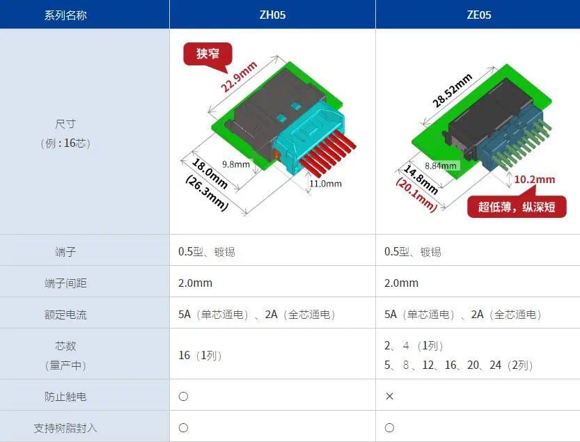 在世界各國加強對環(huán)境監(jiān)管的背景下,使用電動馬達的被稱為新能源車的HEV、PHEV、BEV、FCV等正在加速普及。伴隨著這一潮流,汽車的電氣化不斷發(fā)展,包括連接器在內的車載電氣產品發(fā)揮著越來越重要的作用。 車載用連接器ZH05系列除了具有耐高溫125℃、高耐振性的車載品質外,還具有可防止因異物引起的短路和防止作業(yè)人員觸電的構造。ZH05系列可以廣泛用于對安全對策要求越來越高的車載電氣產品,諸如汽車電池、車載充電器、各種ECU等。