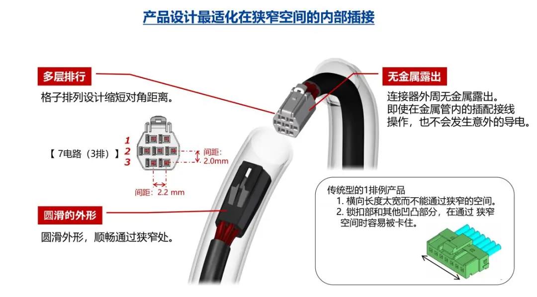 1. 纖細(xì)光滑的外形適合狹窄空間的布線